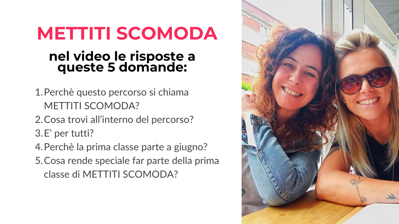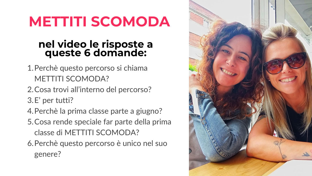 Il percorso completo METTITI SCOMODA avrà un valore di 2.340€ ma l'accesso a questa prima classe ha un